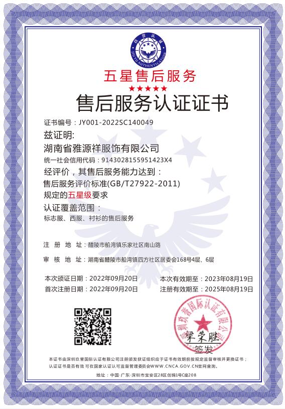售后服務(wù)認(rèn)證證書(shū)